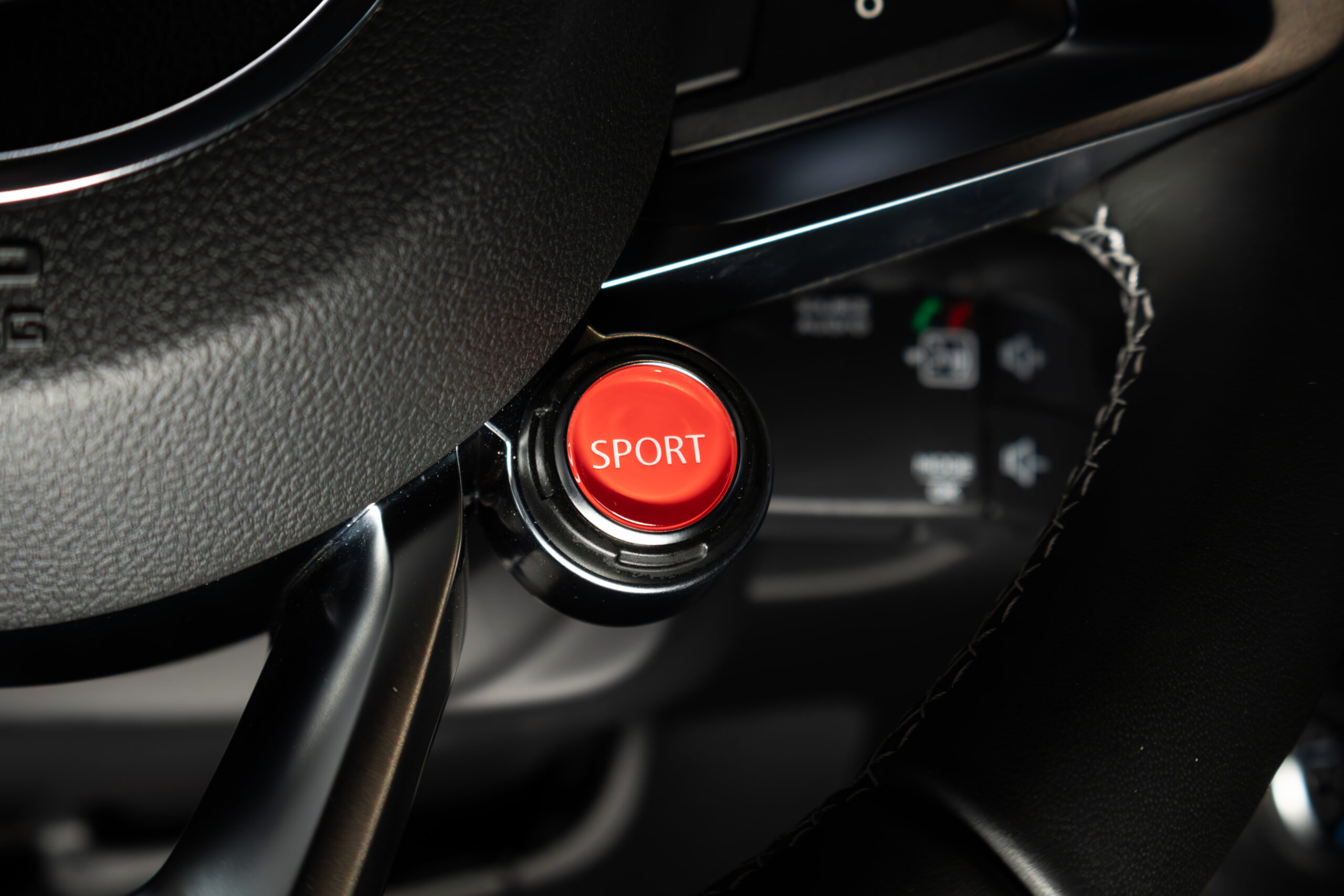 Cuir et alcantara Noir / Surpiqûres bleues