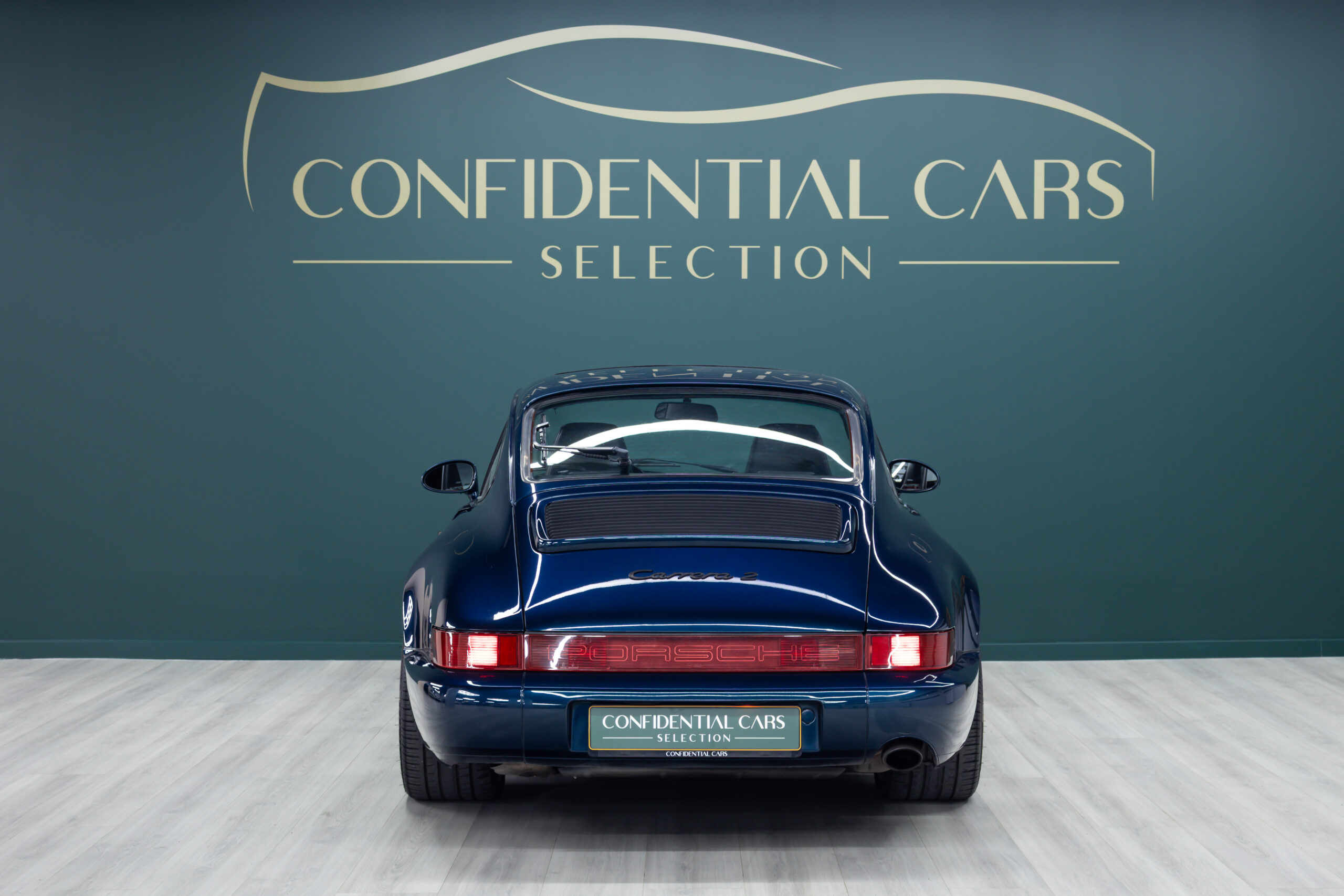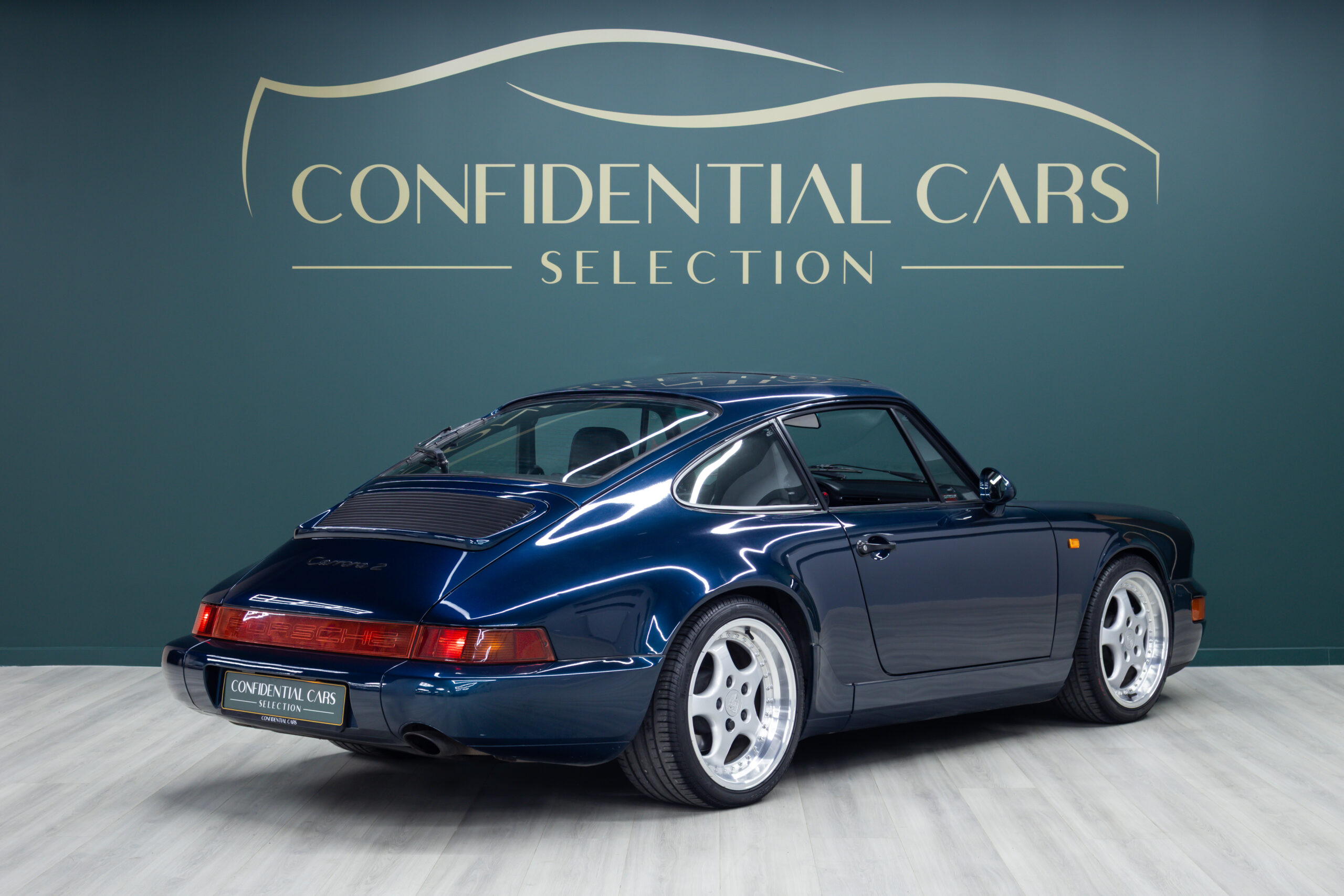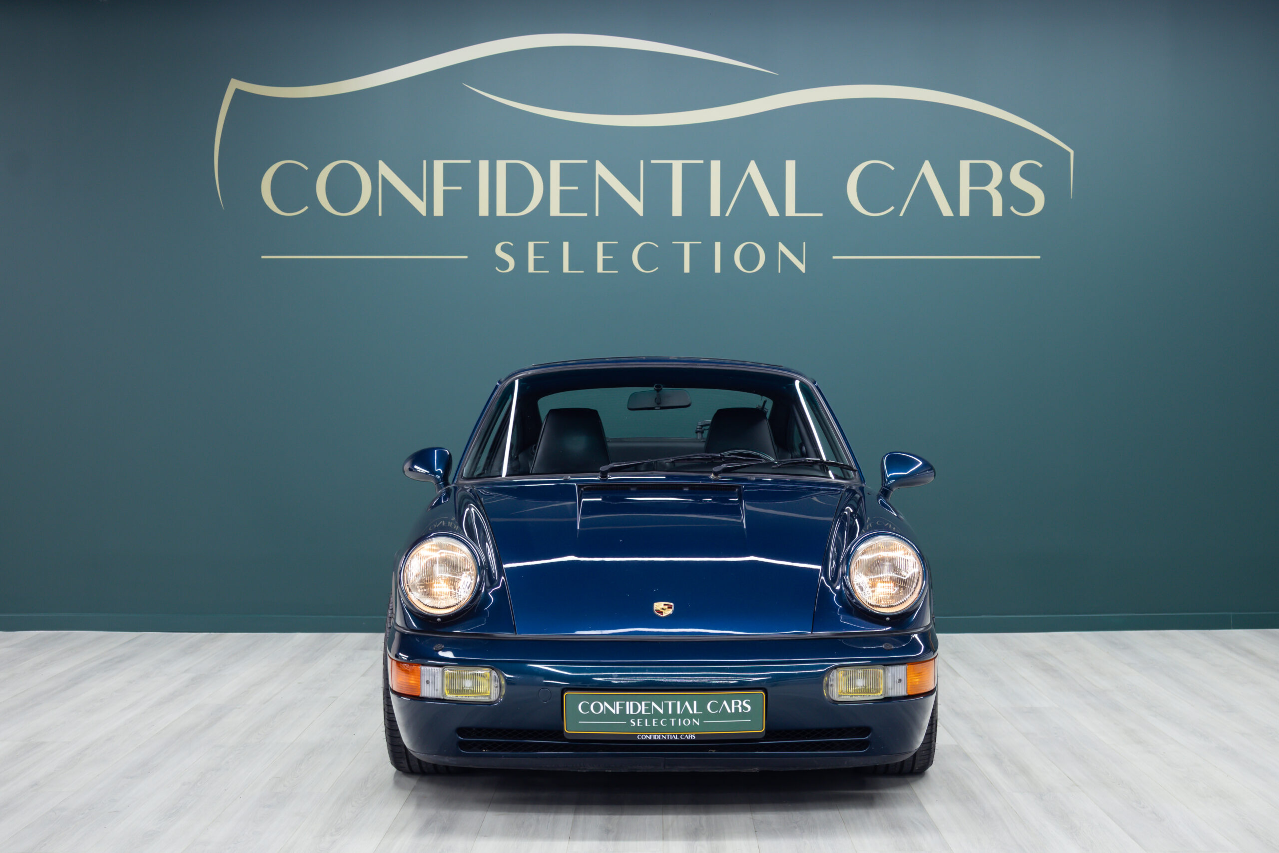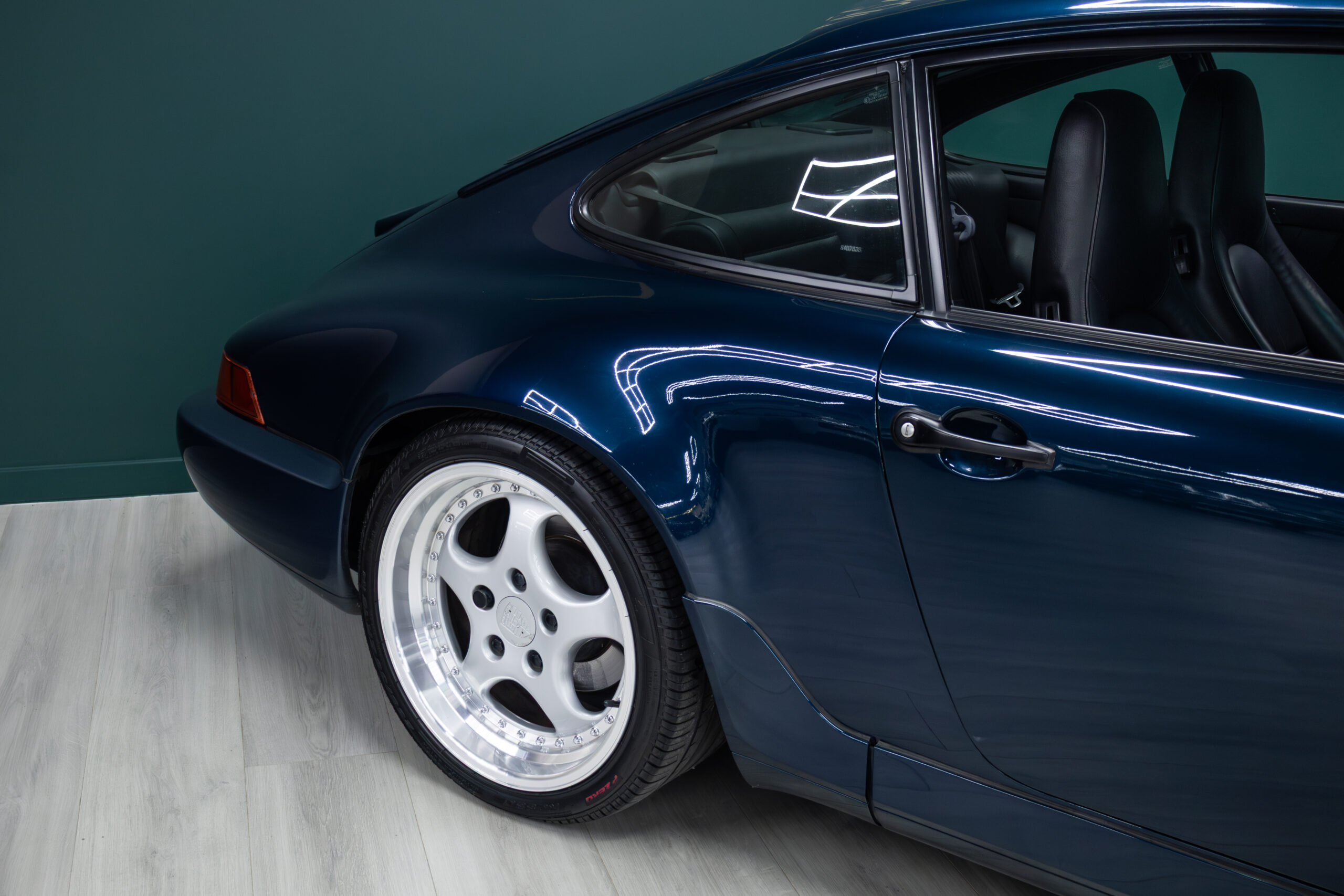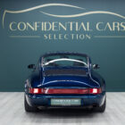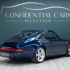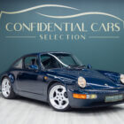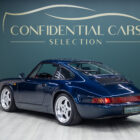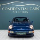 Présentée dans sa teinte rare Amazon Green, associée à un intérieur tout cuir noir, cette Porsche 964 C2 bénéficie d’une configuration élégante et recherchée.