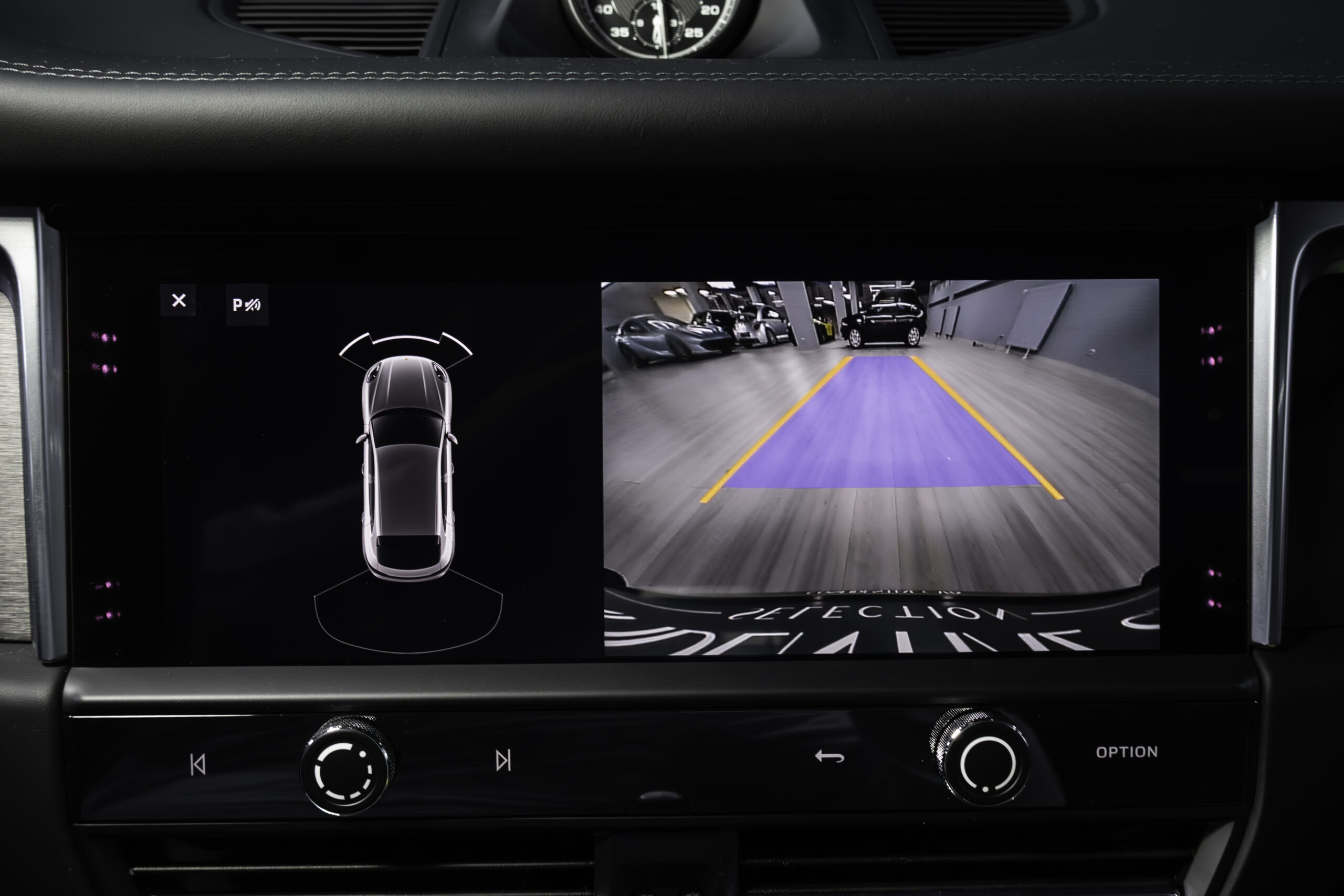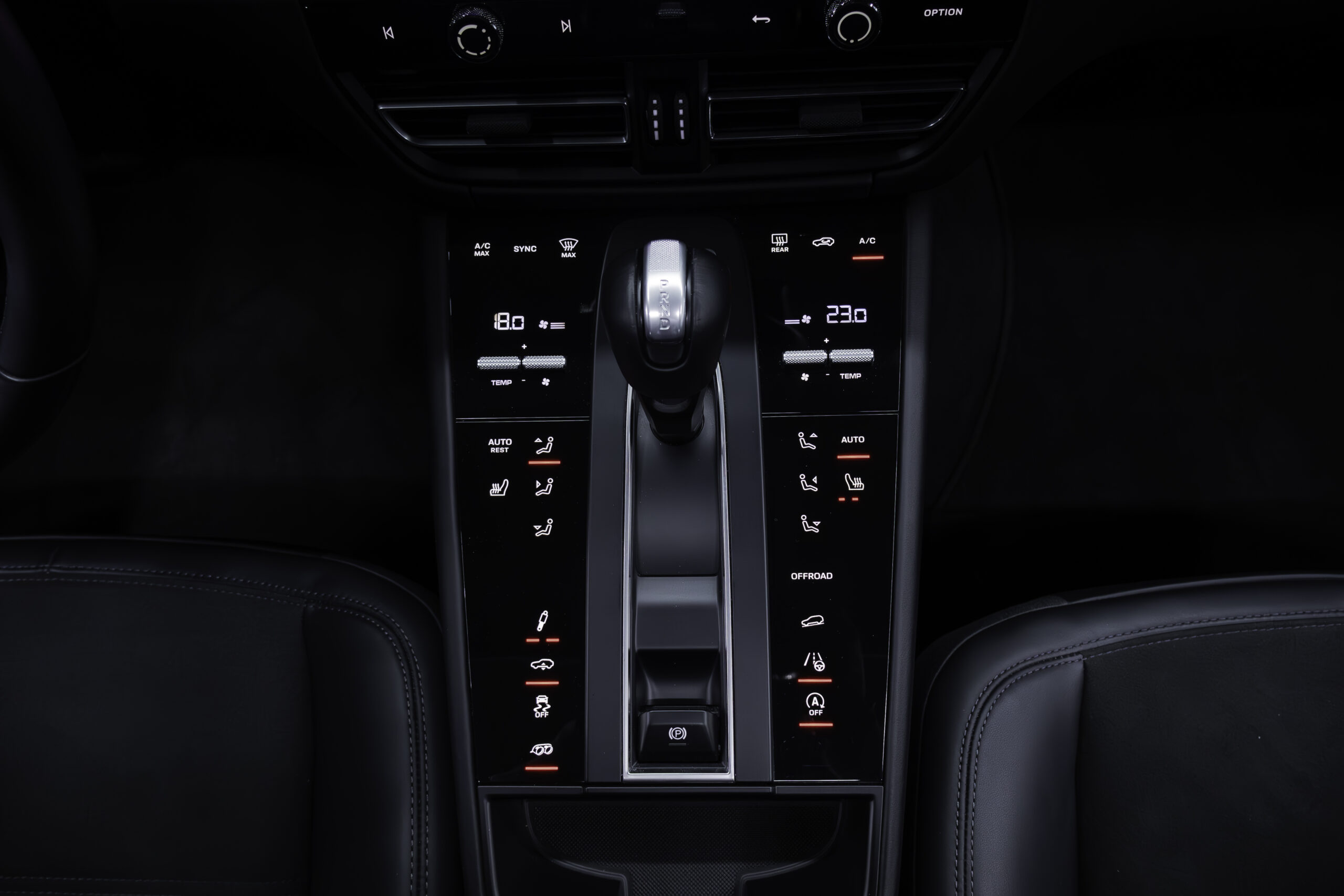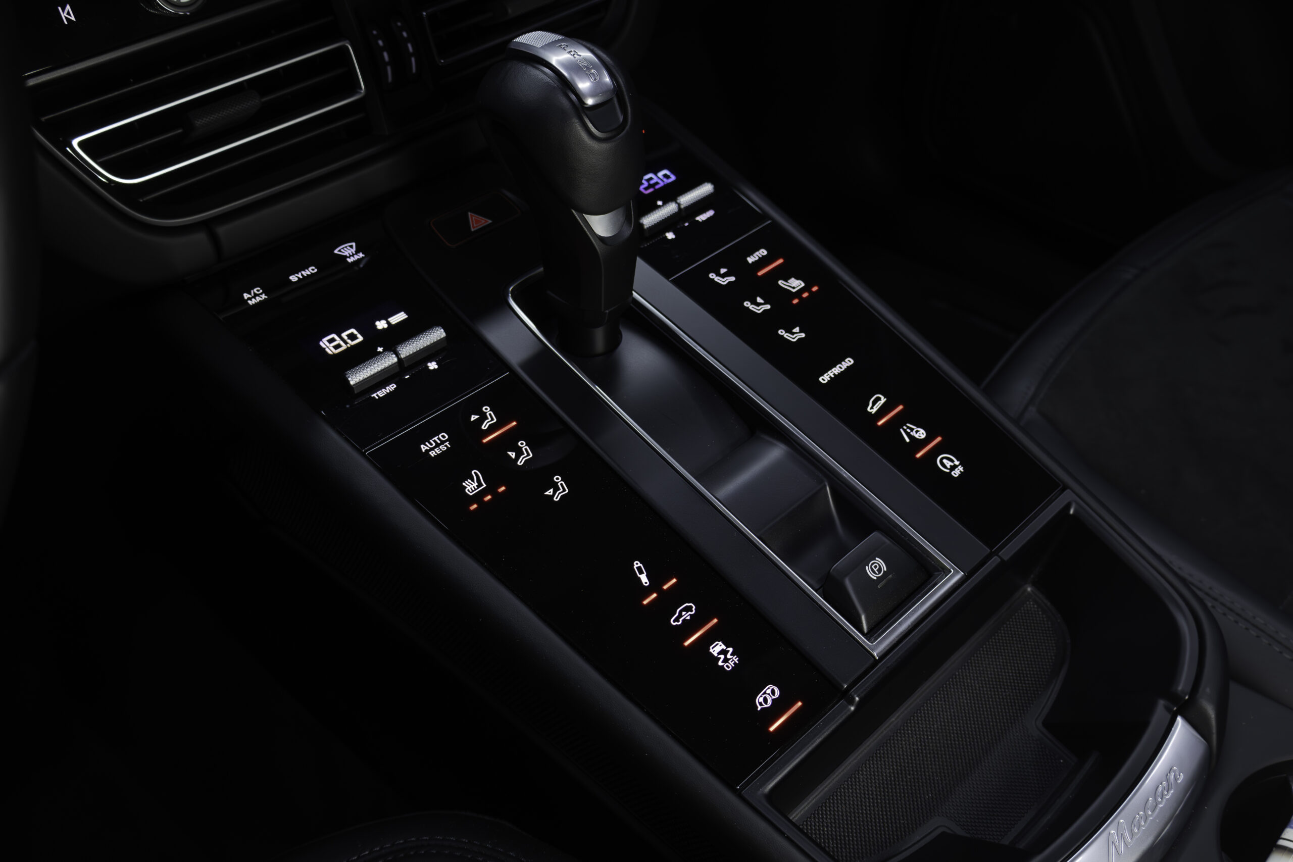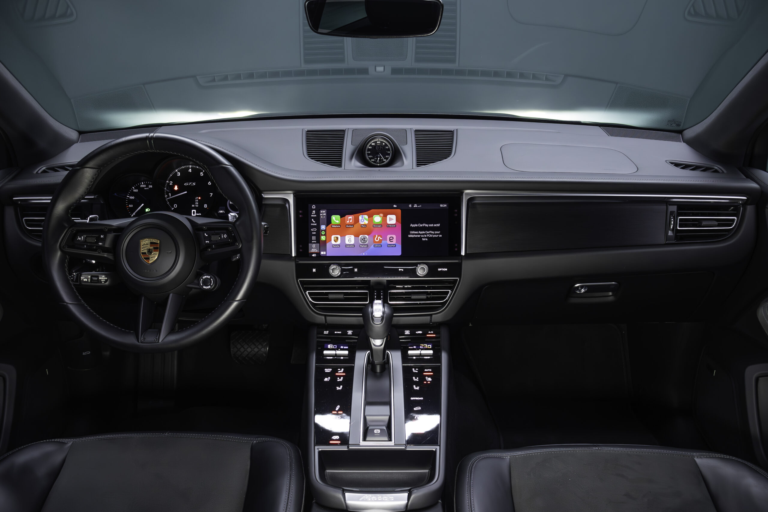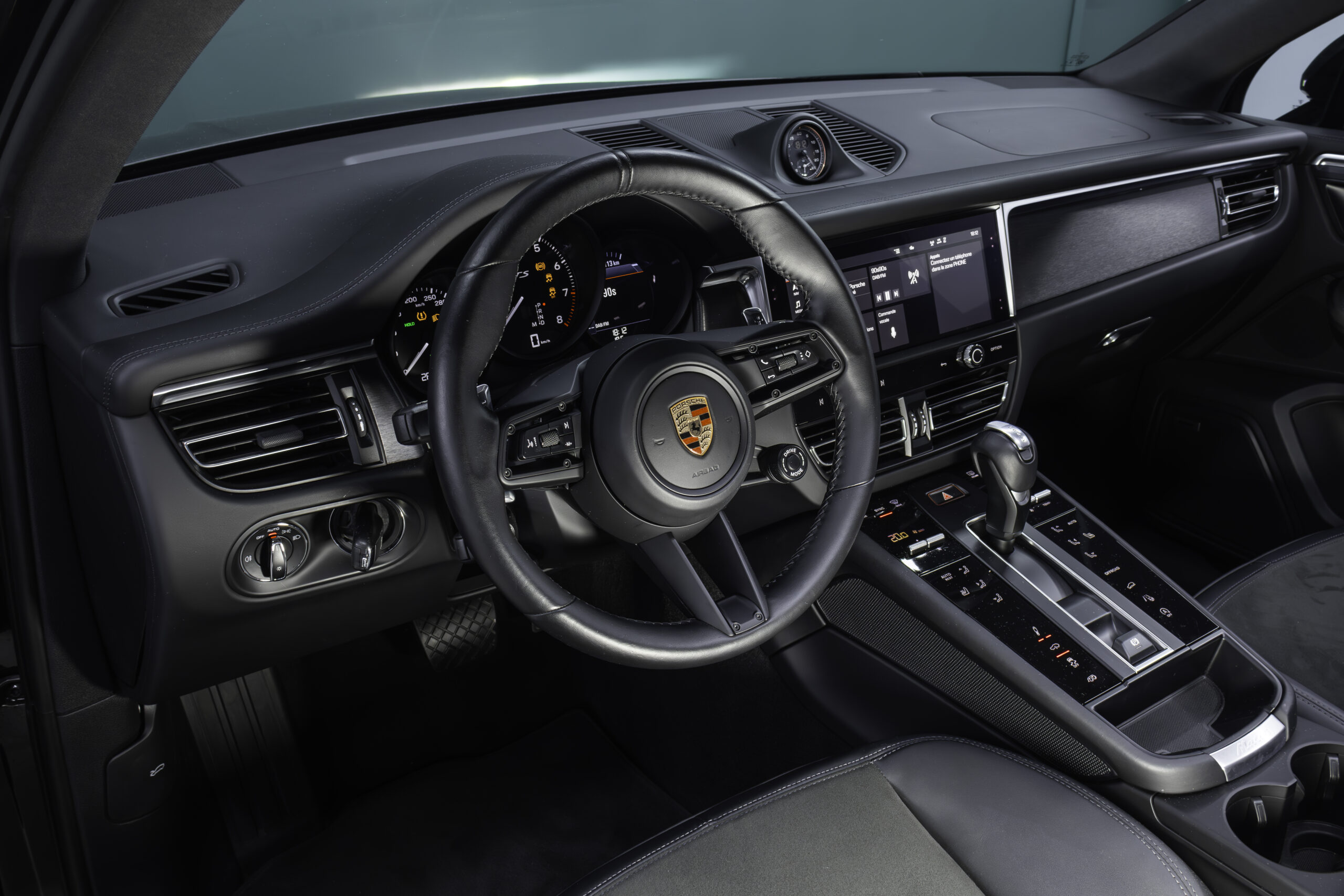 - Accoudoir centrale en race texte avec blason Porsche brodé