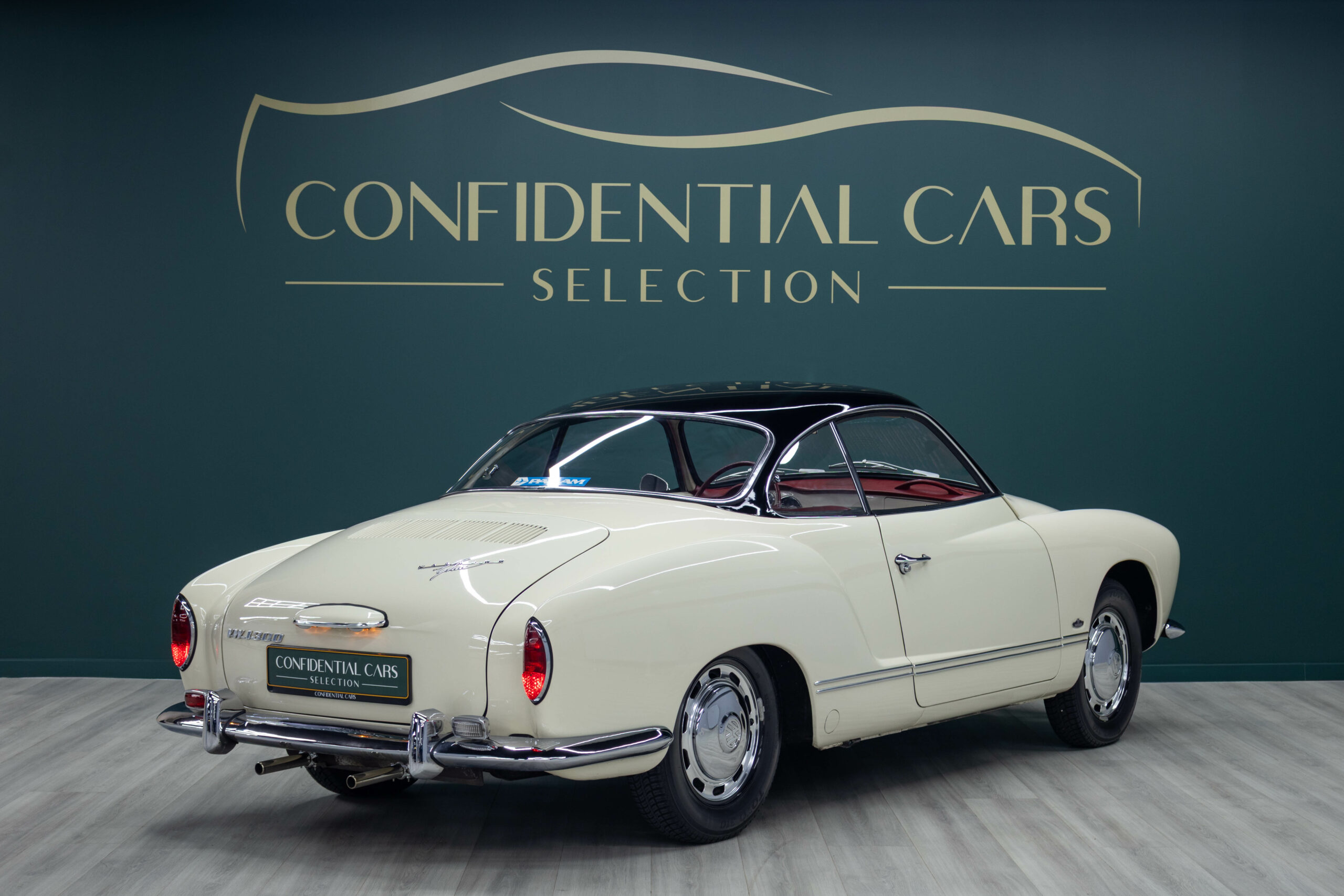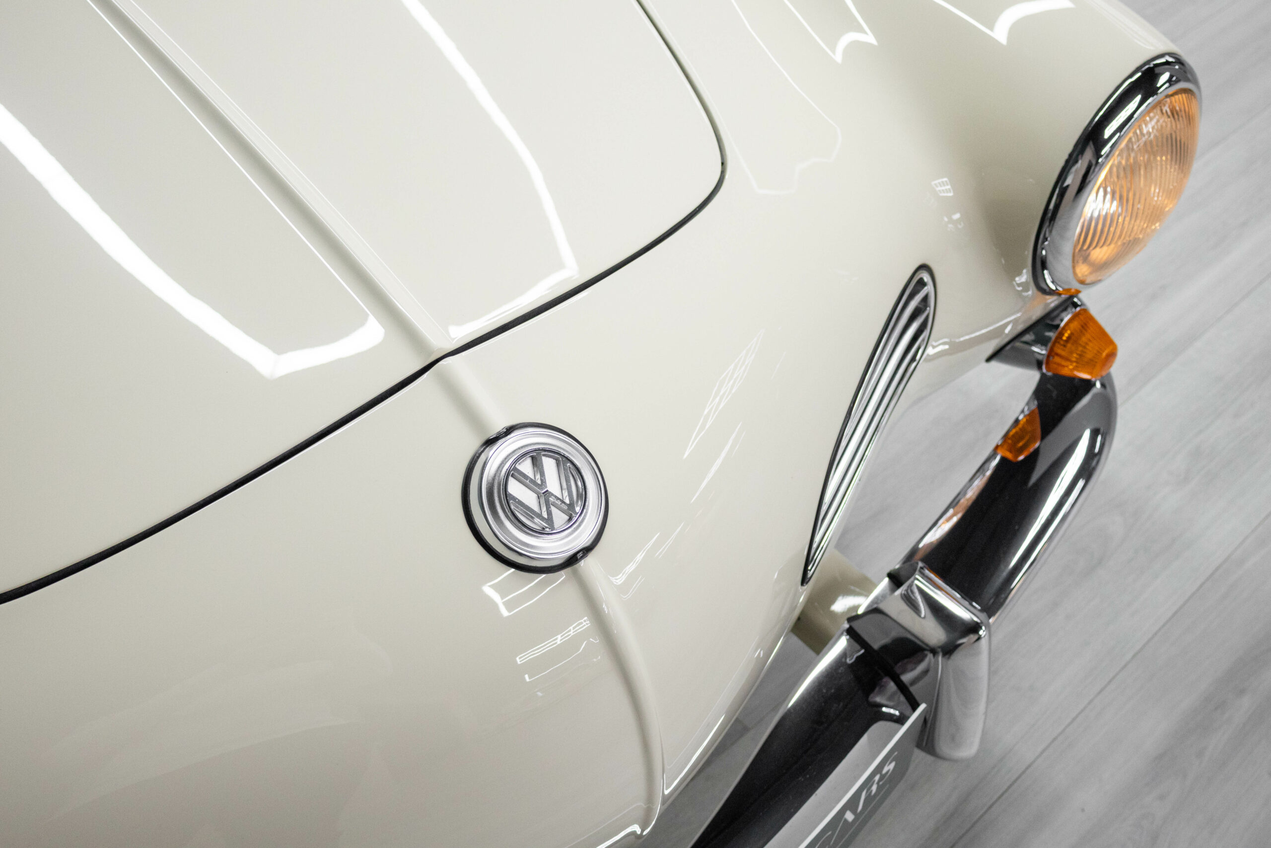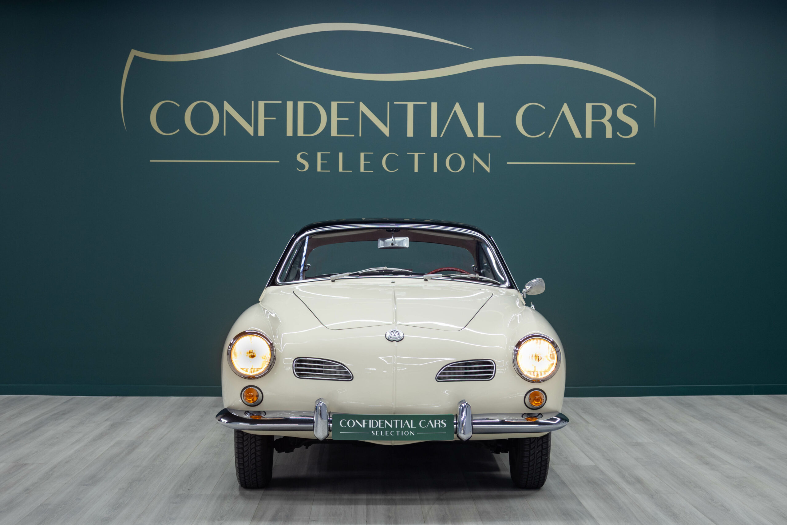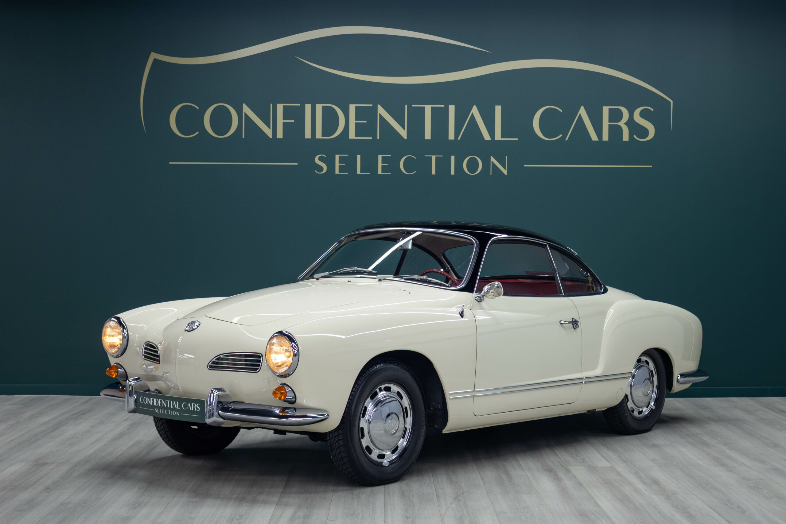 Une Karmann Ghia 1966 dans une configuration classique et raffinée, idéale pour les amateurs de voitures anciennes élégantes.