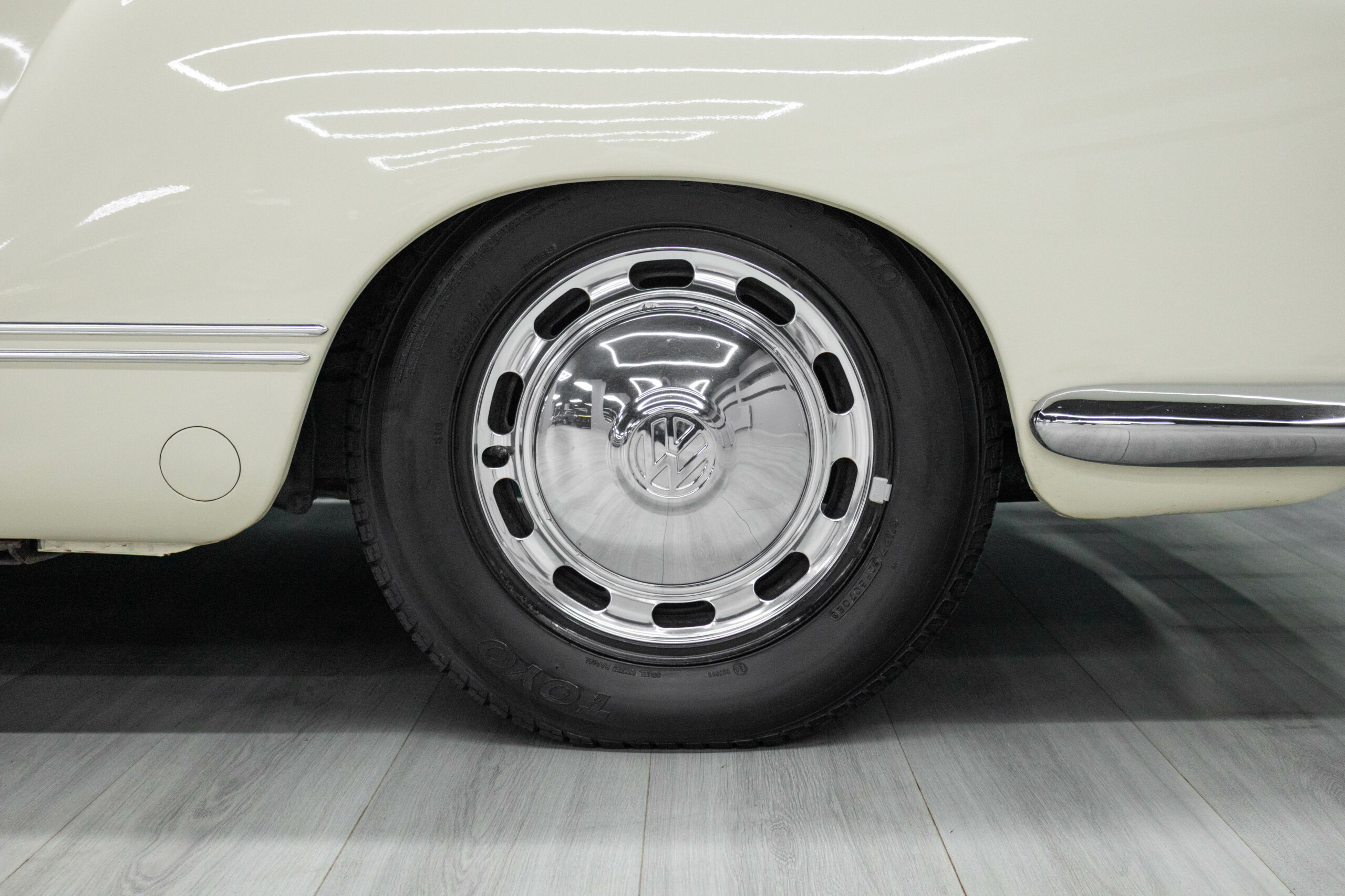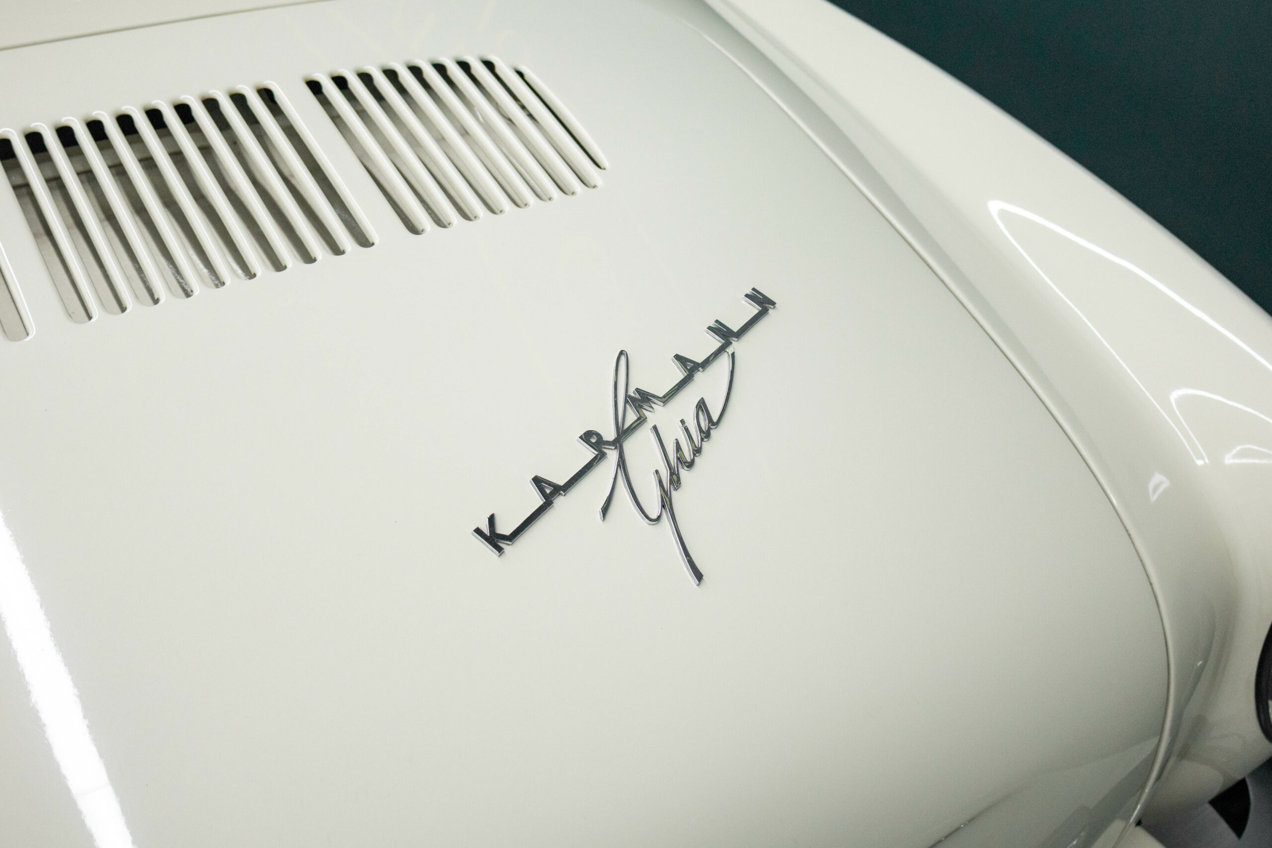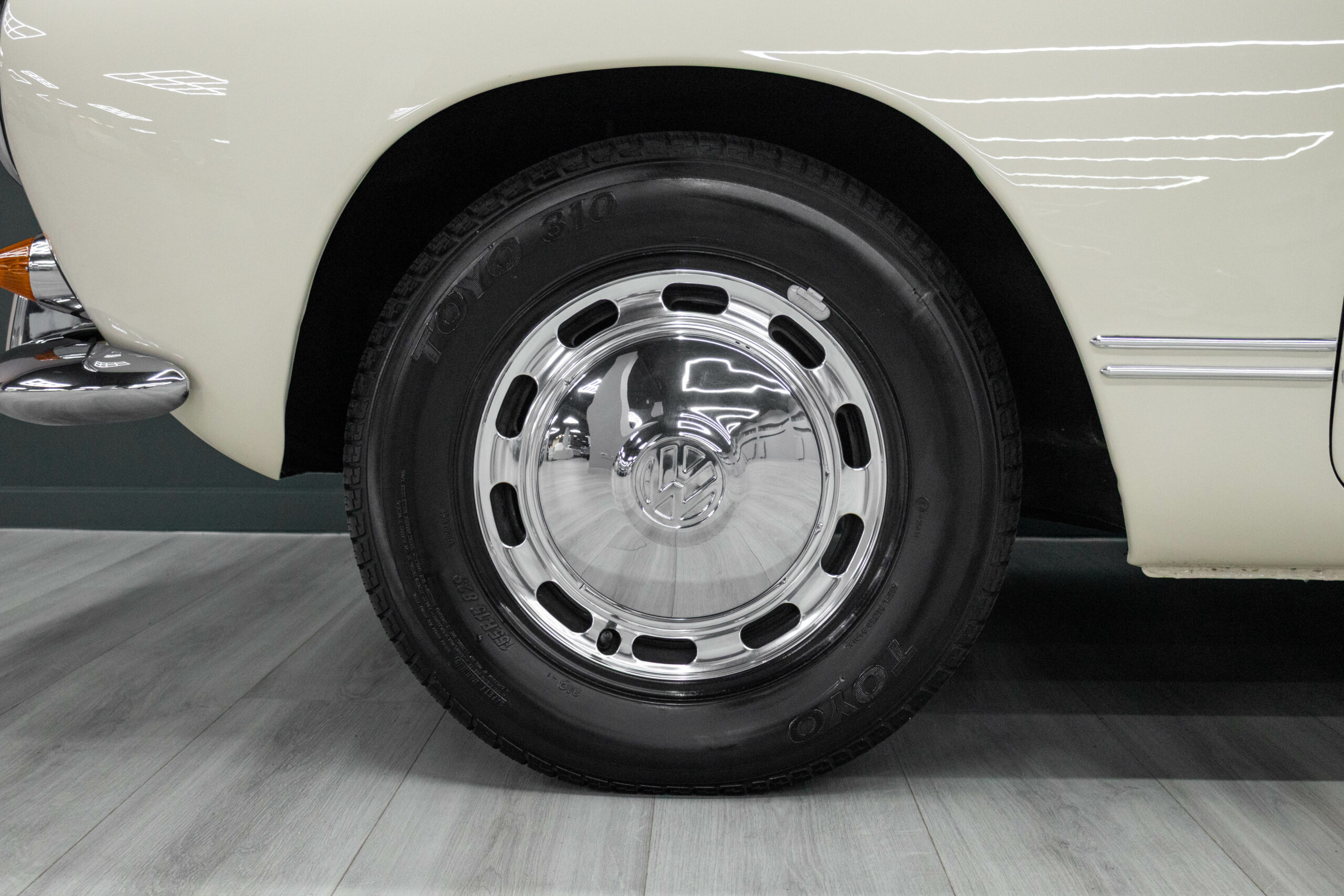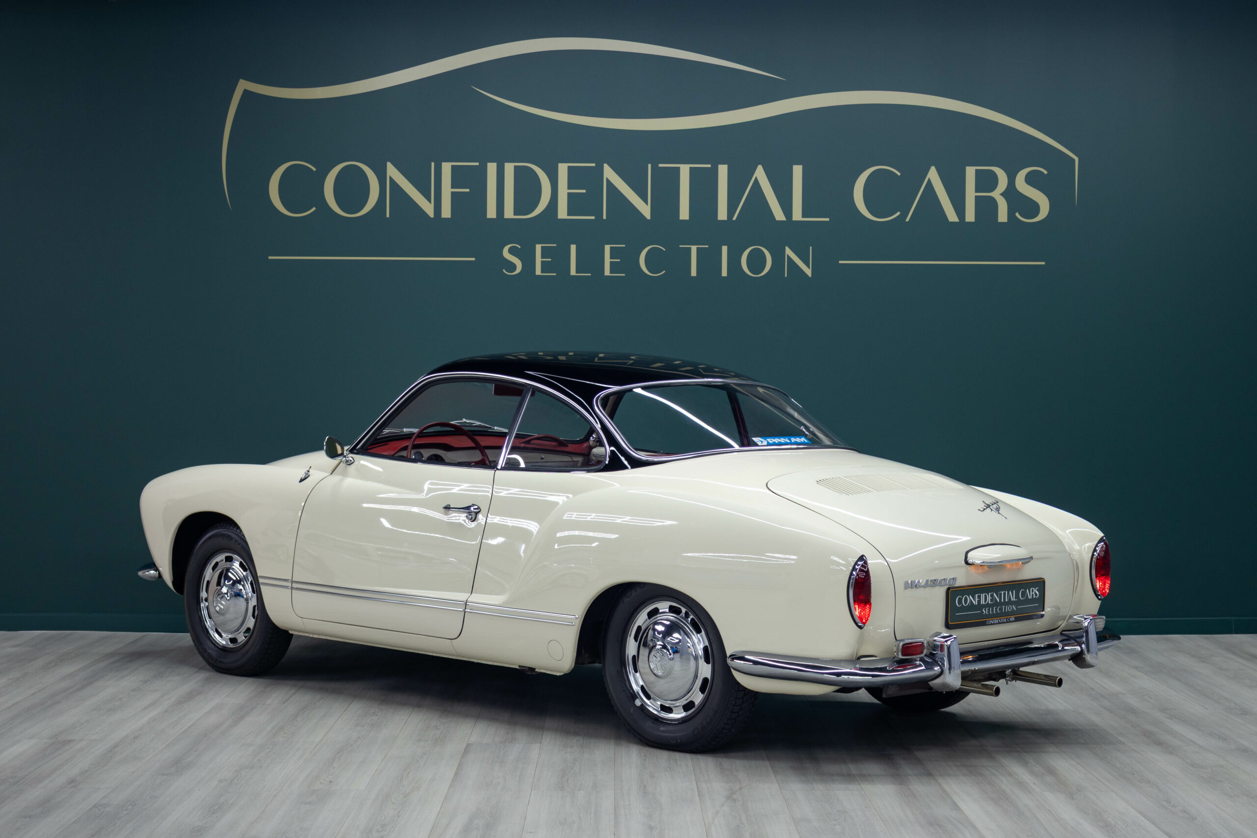 Une Karmann Ghia 1966 dans une configuration classique et raffinée, idéale pour les amateurs de voitures anciennes élégantes.